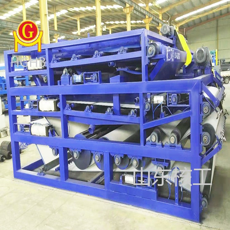 高效絮凝對(duì)污泥進(jìn)行合理的調(diào)質(zhì)處理,利用重力脫水,機(jī)械擠壓脫水原理脫除了污泥中的水分,使污泥以濾餅狀態(tài)排出,可將各種工業(yè)污泥經(jīng)重力脫水后得到高質(zhì)量的泥餅,高品質(zhì)的濾帶在壓濾過(guò)程中可迅速脫水,后面漸小的壓輥排列以及濾帶接觸角度的改變,確保壓力和剪切的最佳組合,從而大大提高泥餅含固率和脫水效率,獨(dú)特設(shè)計(jì)的電磁調(diào)偏和濾帶張緊系統(tǒng)解決了設(shè)備使用中的一些困難。