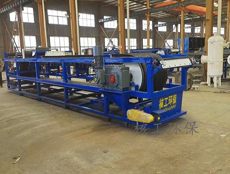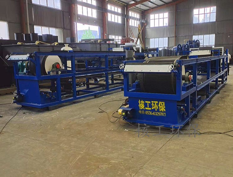 帶式真空過(guò)濾機(jī)是以真空負(fù)壓為推動(dòng)力實(shí)現(xiàn)固液分離的設(shè)備,在結(jié)構(gòu)上,過(guò)濾區(qū)段沿水平長(zhǎng)度方向布置,可以連續(xù)完成過(guò)濾、洗滌、吸干、濾布再生等作業(yè)。設(shè)備具有過(guò)濾效率高、生產(chǎn)能力大、洗滌效果好、濾餅水分低、操作靈活,維修費(fèi)用低等優(yōu)點(diǎn)??蓮V泛應(yīng)用于冶金、礦山、化工、造紙、食品、制藥、環(huán)保等領(lǐng)域中的固液分離,尤其在煙氣脫硫中的石膏脫水方面(FGD)有良好的應(yīng)用。